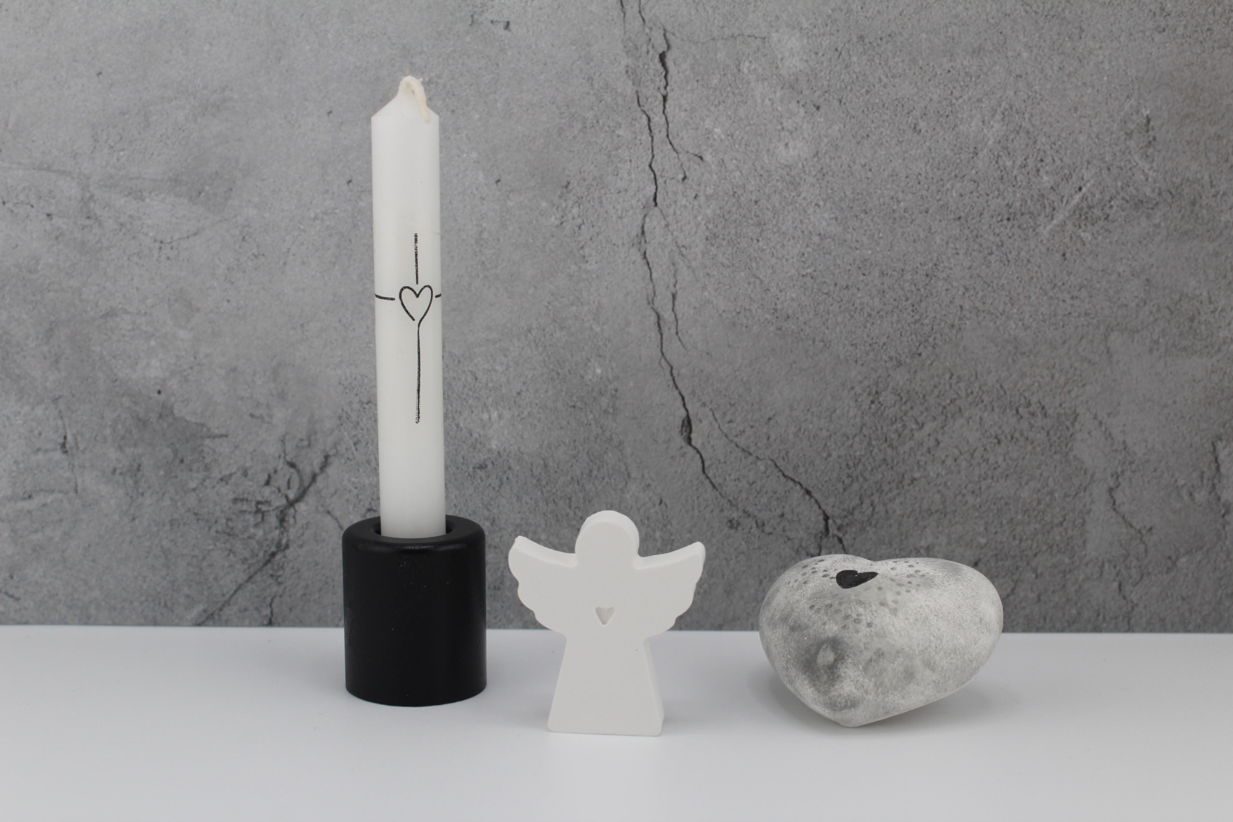 der Engel und das Herz stehen für die Verbundenheit mit dem geliebten Menschen.